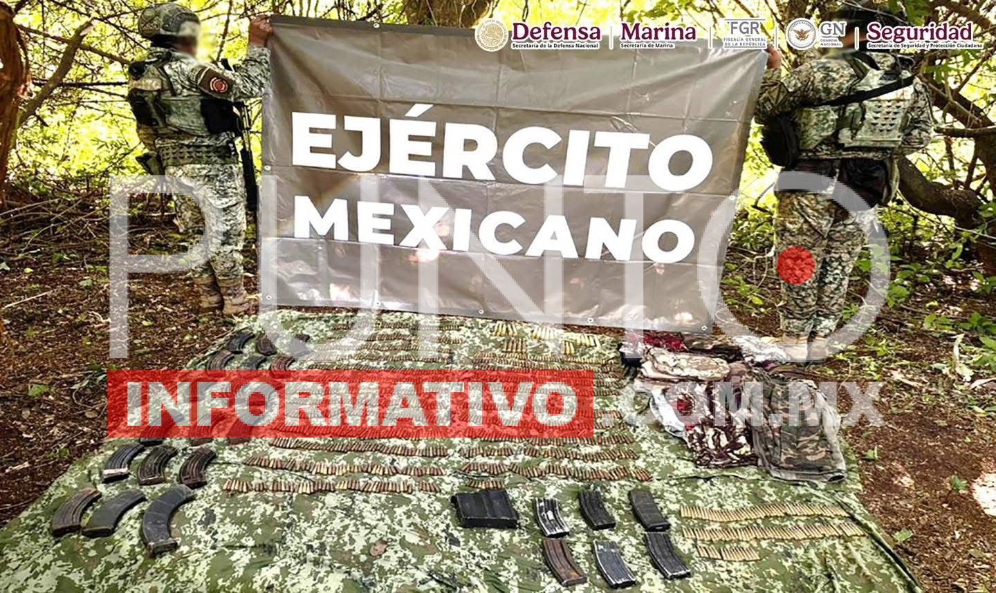 En Concordia y Mazatlán se aseguraron 26 cargadores, 1,293 cartuchos, 43 artefactos explosivos improvisados, 36 granadas y equipo táctico.