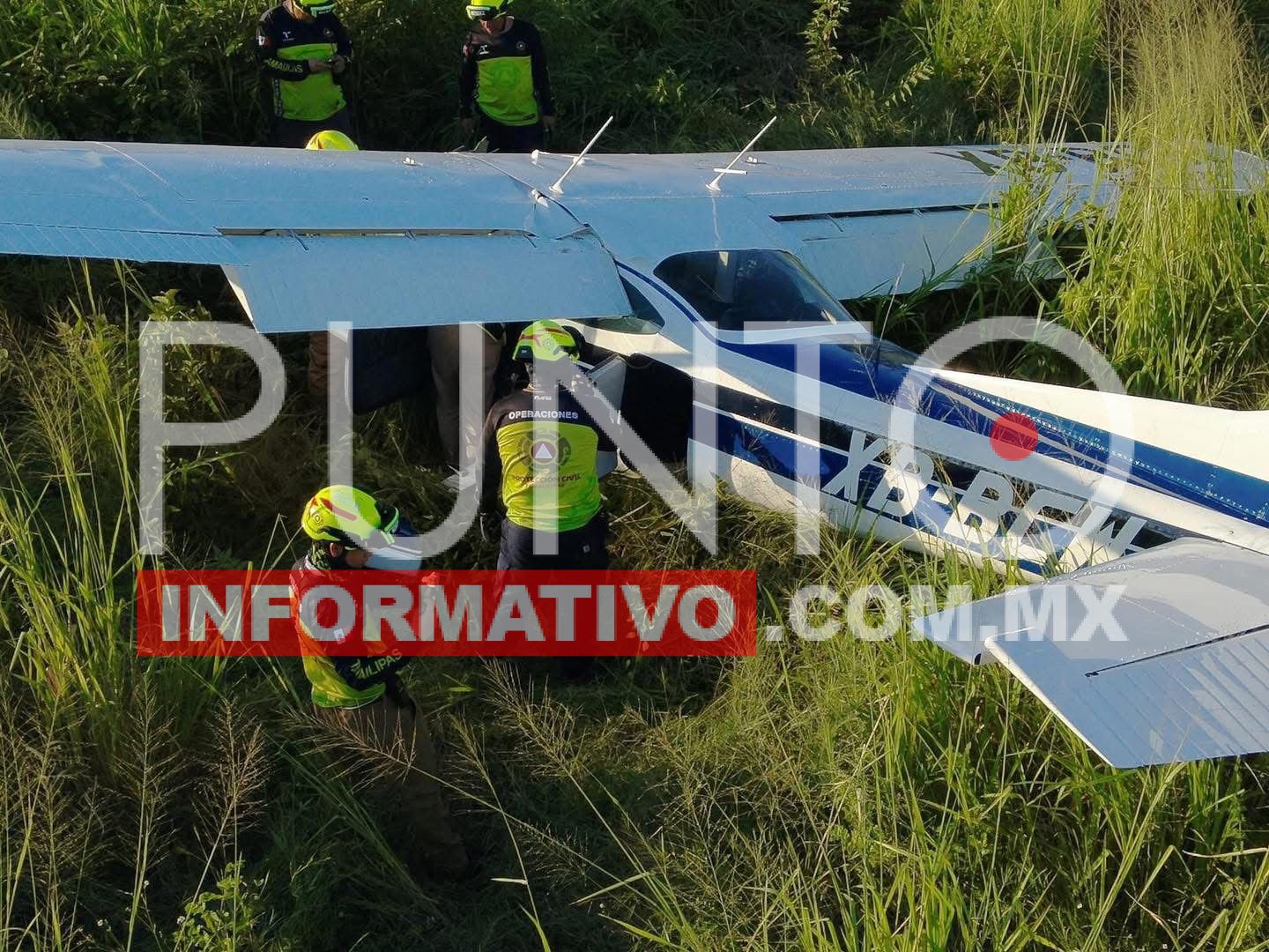 Aldama, Tamaulipas. – Una avioneta con matrícula XB-BCW, que realizaba un vuelo procedente de McAllen, Texas, con destino a Tampico, realizó un aterrizaje de emergencia entre la maleza, a la altura de la carretera Aldama–Tampico.