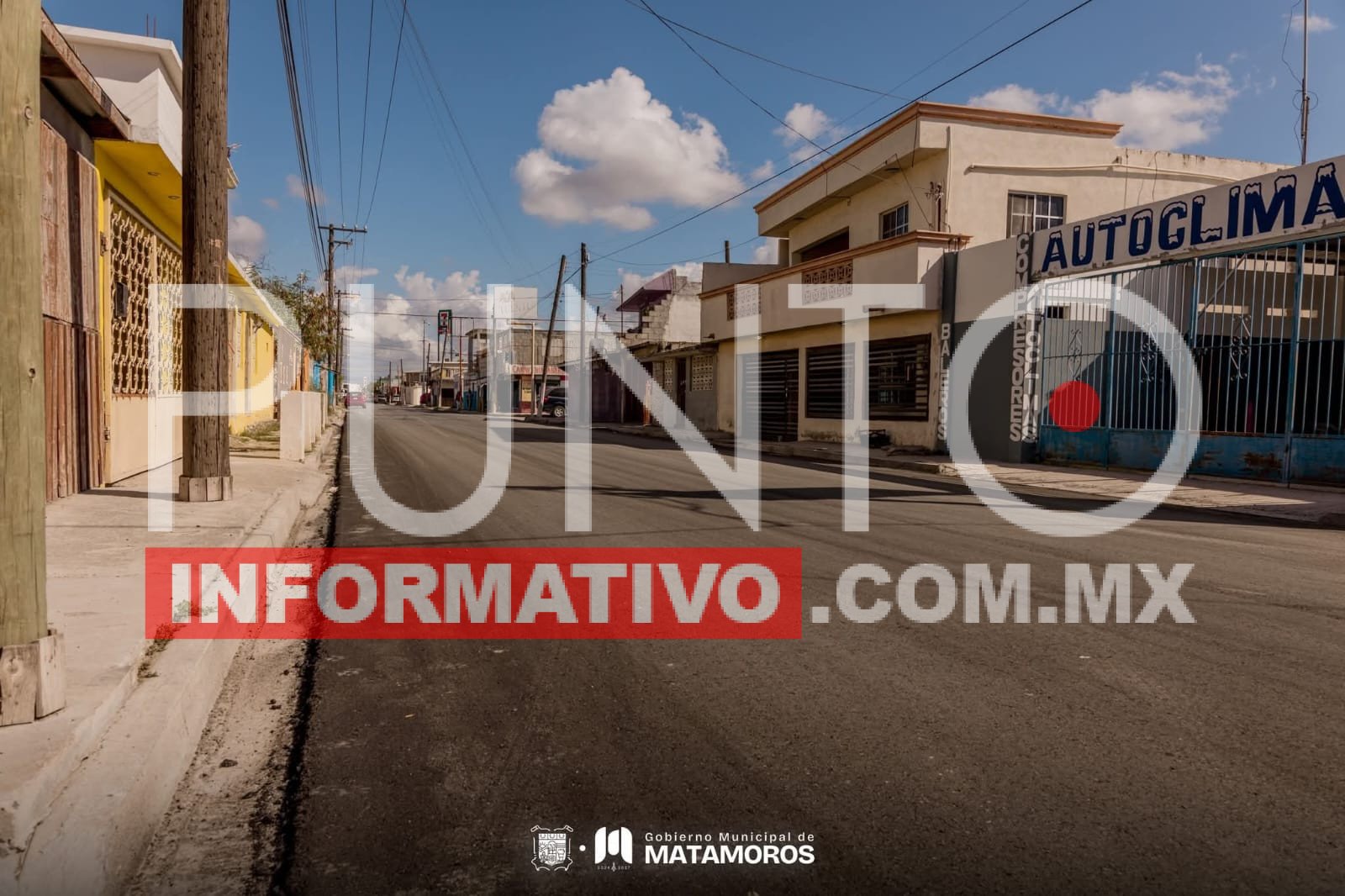 Matamoros, Tam.- El Gobierno de Beto Granados concluyó los trabajos de reencarpetamiento en la Calle Mocambo, en los tramos comprendidos de Playa Sol a Roberto Guerra y de Lázaro Cárdenas a Constitución de 1917, beneficiando directamente a las y los habitantes de las colonias Playa Sol e Independencia.