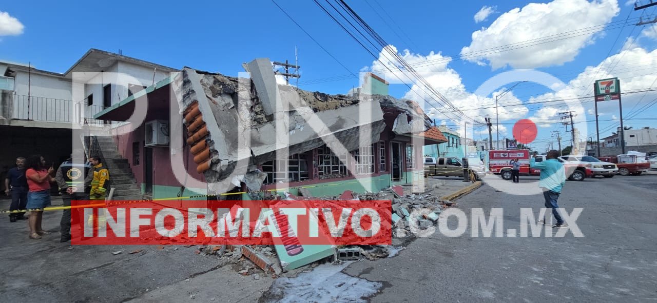 Gustavo Acuña, comandante de Bomberos, expresó que de acuerdo a la versión del dueño, un camión que les surte al entrar a la cochera ha golpeado en varias ocasiones esta fachada, la cual ya se encontraba deteriorada y por ello se derrumbó.