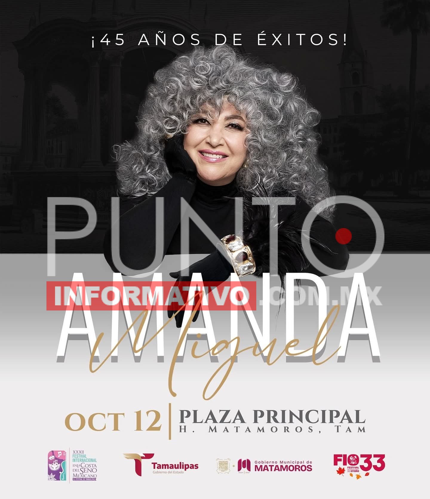 Matamoros, Tamaulipas. – El Gobierno Municipal de Matamoros, que encabeza el alcalde Beto Granados, invita a toda la ciudadanía a disfrutar del gran concierto de Amanda Miguel, reconocida artista internacional que llegará a esta ciudad para engalanar la clausura del Festival Internacional de Otoño.
