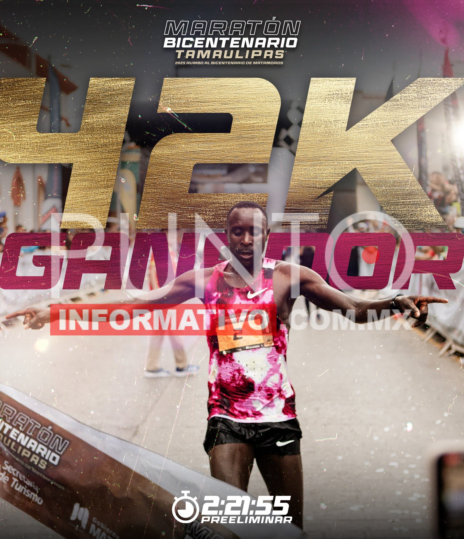 H. Matamoros, Tamaulipas.– Con un desempeño extraordinario, el atleta originario de Kenia, Wilfrido Nyagoo, se coronó como ganador absoluto del Maratón 42K Bicentenario, al cruzar la meta con un tiempo oficial de 2:21:55, consolidando una edición histórica para esta competencia que reúne a corredores locales, nacionales e internacionales.